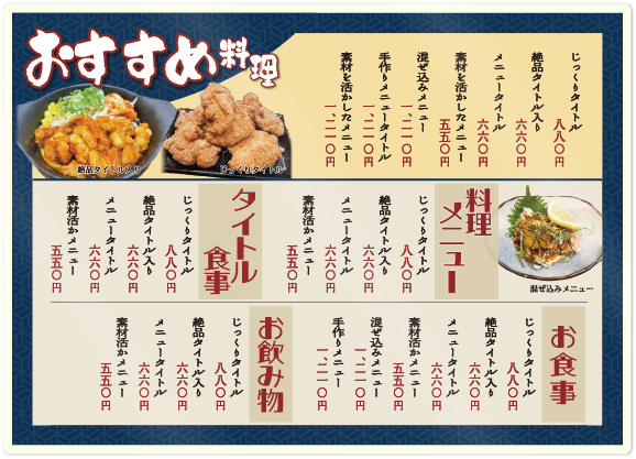 飲食店の様々な業態のメニュー表をプロが制作(相談実績270件以上)。